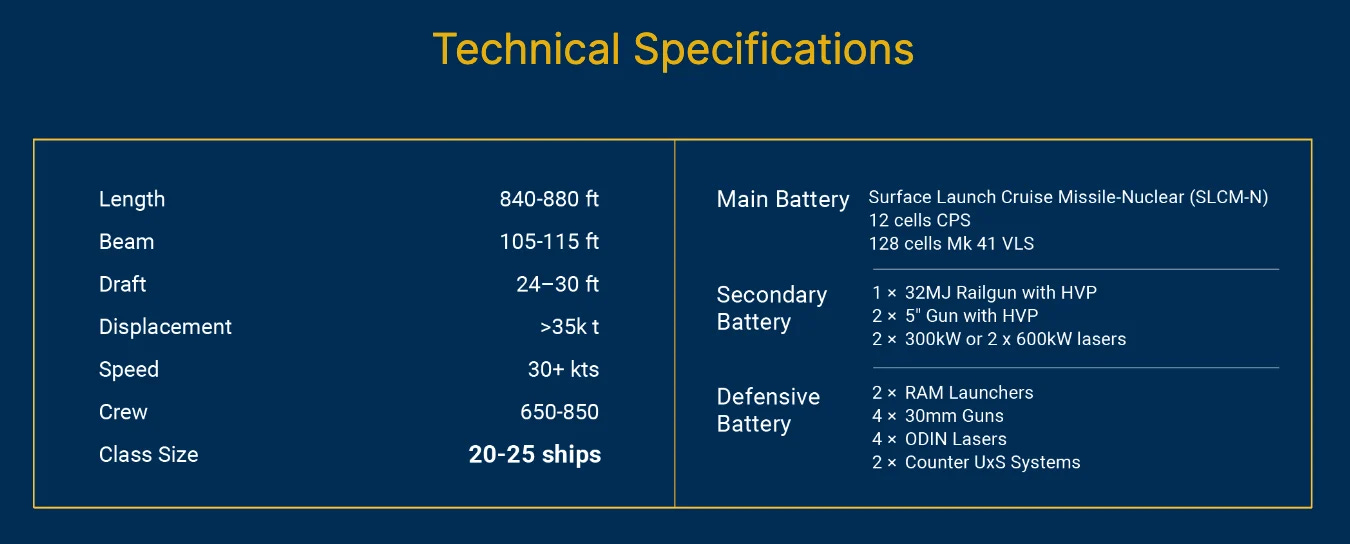 (2) There is no hard information on the design of the ship’s conventional power plant or who will supply it once the actual requirements are defined. Because of the laser weapons and railgun, the ship will also need a vast amount of power storage onboard.