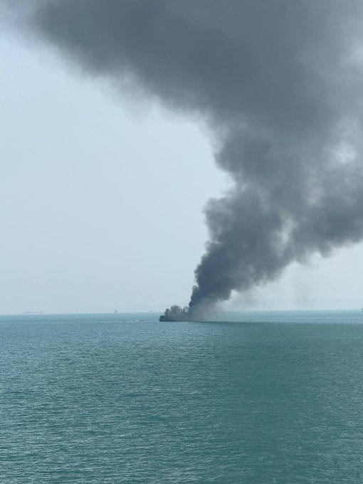IRINS Makran (Forward Base Ship): Satellite imagery from March 2 shows the Makran (a massive converted tanker used as a mobile base) on fire at its berth in Bandar Abbas.