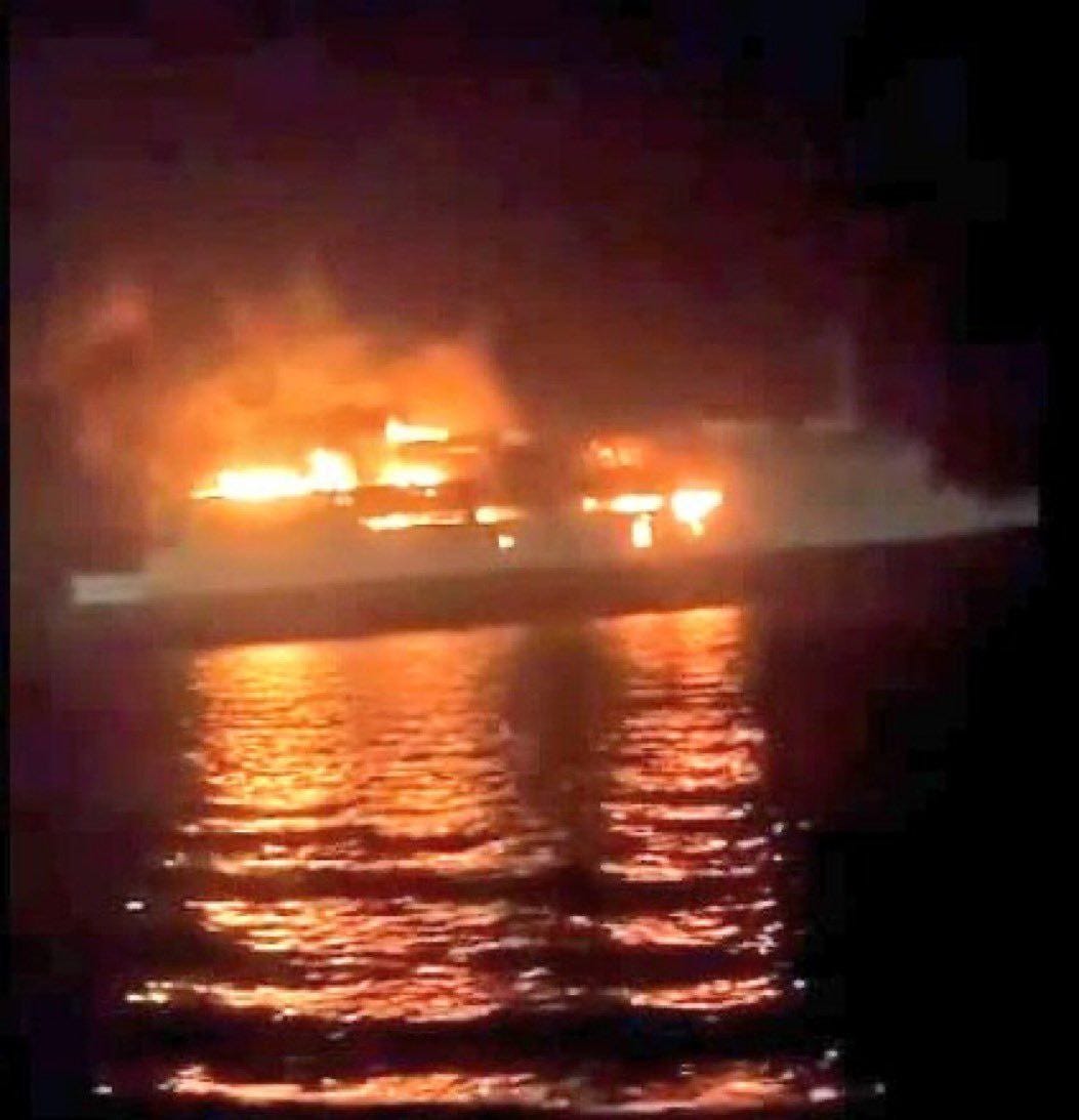 The tanker, the MK Strinda, was carrying biofuel (probably palm oil), not fuel oil, and was headed to the Suez Canal. Its voyage originated in Malaysia. The crew on the Strinda was reportedly safe. However the ship was engulfed in flames at one point.