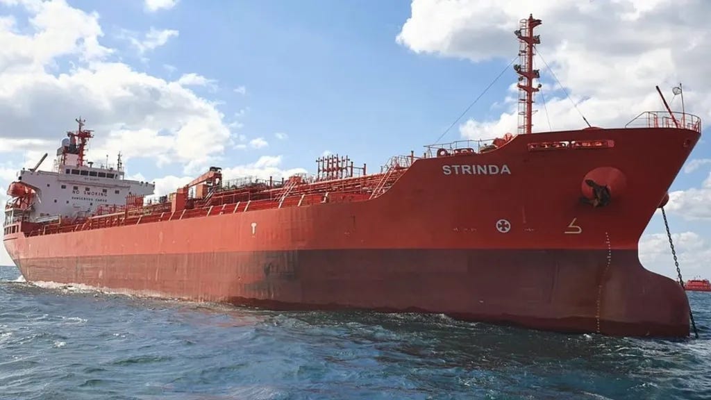 According to al-Arabiya, the Strinda "had been tentatively nominated by charterers for a cargo out of the Israeli port of Ashdod in January of 2024."