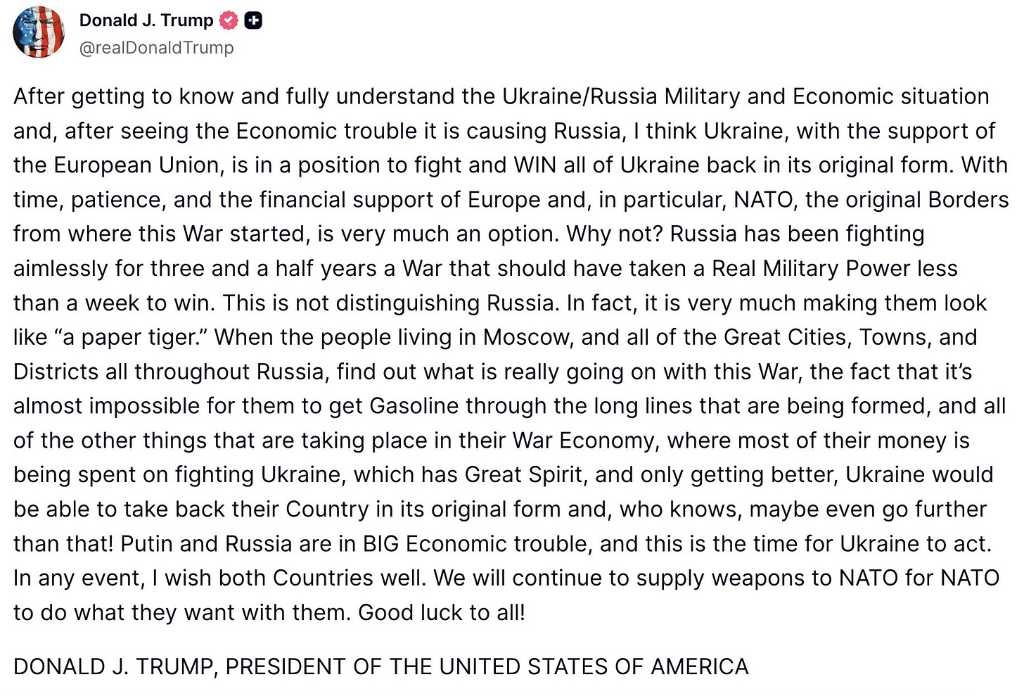 Trump's Truth Social Manifesto on Ukraine and Russia