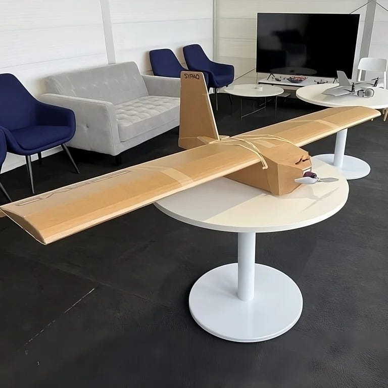 The Ukrainians claim this is the drone that hit Pskov. However the Sypaq cardboard drone (officially the Sypaq Corvo Precision Payload Delivery System) has a range of only 75 miles, which means if this is the drone that was used in the Pskov attack it needed to be launched from relatively close range. The Estonian border is 38.1 miles (61.3 km) from Pskov, within range of the cardboard drone. The drone does not appear to have a camera and is likely guided by GPS. The drone itself weighs 5.3 lbs. (2.4 kg) empty and can allegedly carry up to 6.6 lbs. (3 kg), more than the weight of the drone itself. It is battery powered.