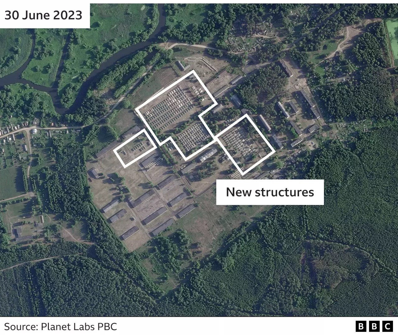 Meanwhile, in Belarus, work is moving ahead frantically on the construction of a new base for the Wagner forces. That base is near the town of Osipovichi, some 90 km southeast of the Belarusian capital.