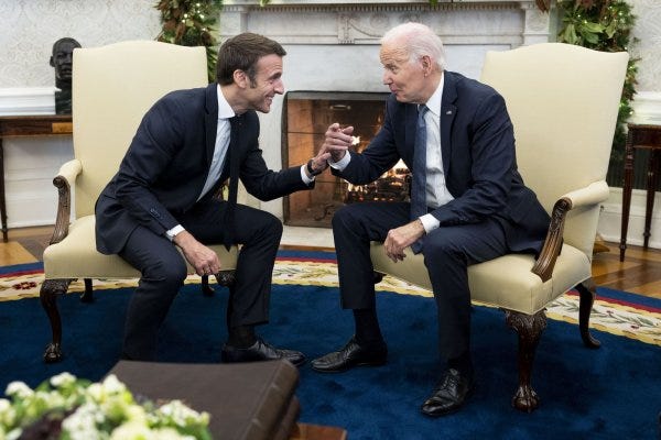 Washington thinks Ukraine is winning the war against Russia, but that has not convinced the Pentagon that thinks the White House has overestimated Ukrainian victories in the field, and has not properly assessed the massive attacks on Ukraine's critical infrastructure that might soon cripple the country. So long as the White House and its NSC, mostly filled with amateurs, thinks they can win, there is no chance Biden will give an inch. That is the message Macron got as he flits around trying to work out some sort of deal.
